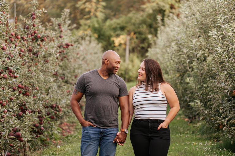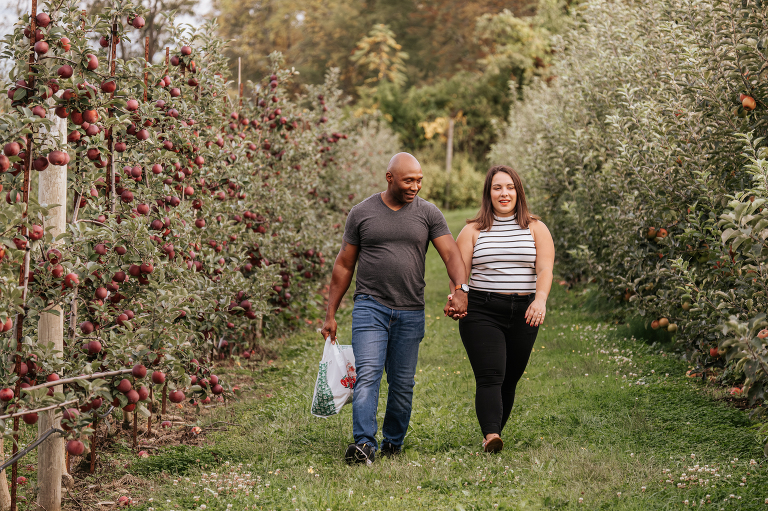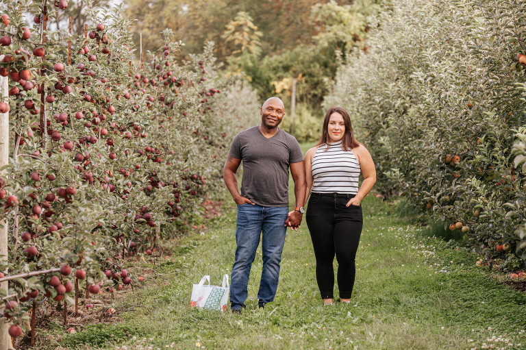 Woodstock Orchards is one of my personal favorite apple orchards, and it was a perfect spot to start Brittney and John’s engagement session. It was fun to discover that this was also John’s first time apple picking. I am so glad that they have this brilliant new memory together. Engagement sessions should be fun and I hope the couples I photograph look back at their engagement session with happiness. There is just something so romantic about autumn in an orchard.
