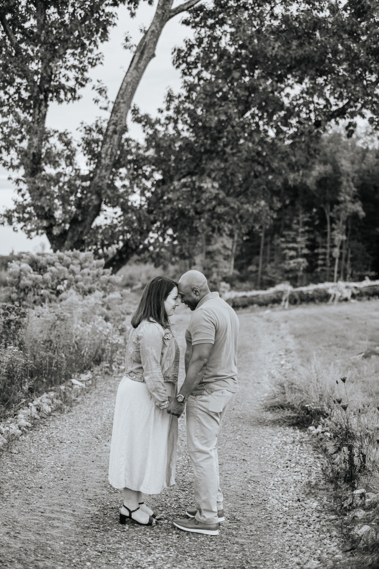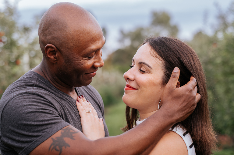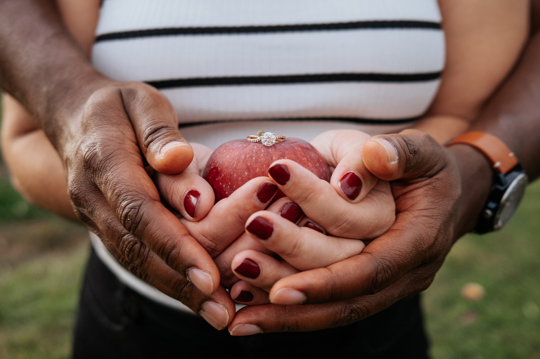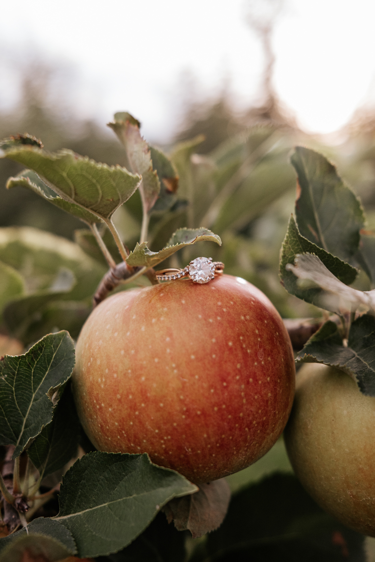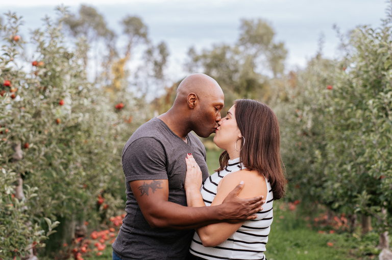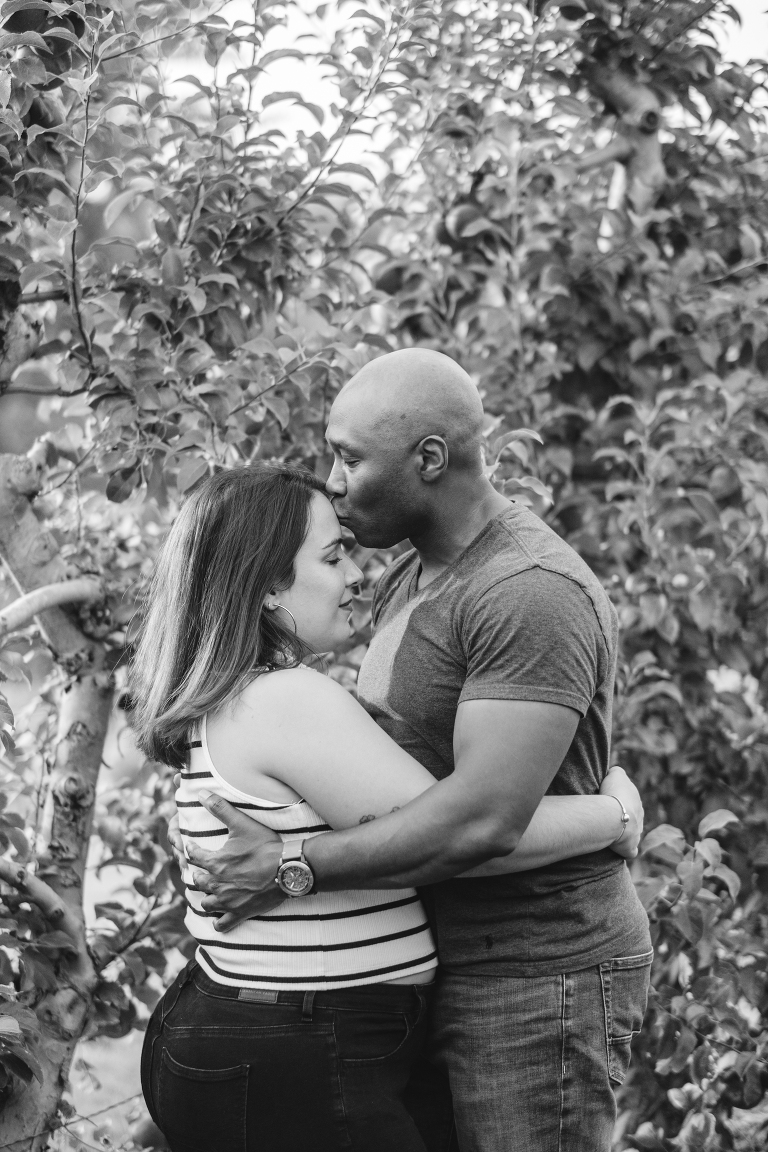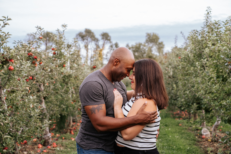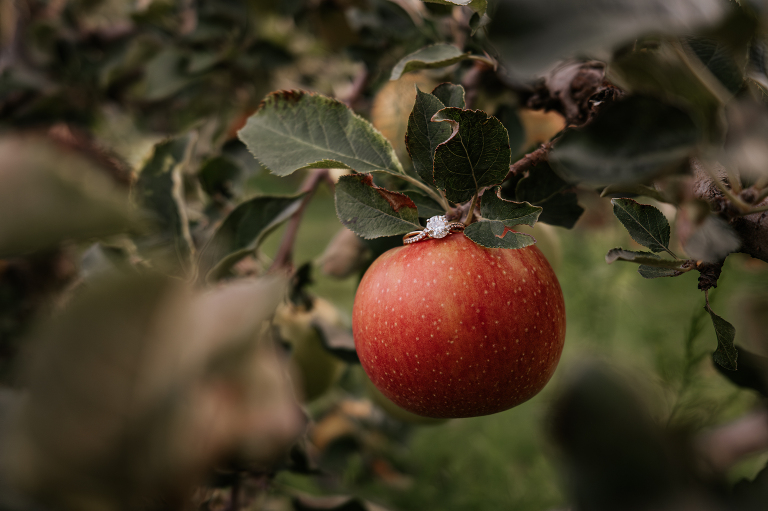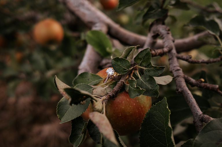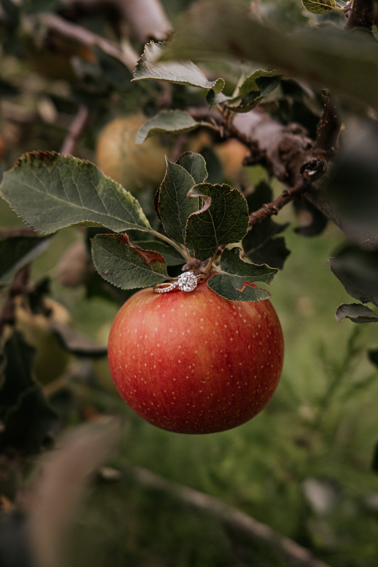 Brittney and John are getting married next spring! We spoke a few times on the phone before their engagement, but their session was the first time we met in person. They are even more lovely in-person and it was such a joy to capture this moment of their love story. Apple orchard engagements are my favorite. I love the crisp apples and the vibrant colors in an orchard on an overcast day. Is there anything more romantic during autumn in New England?