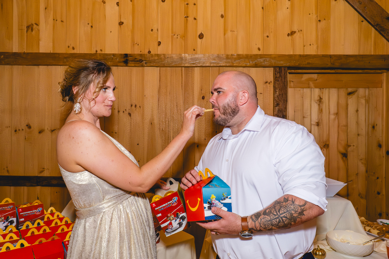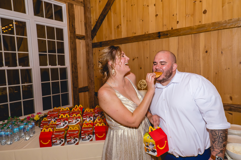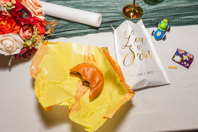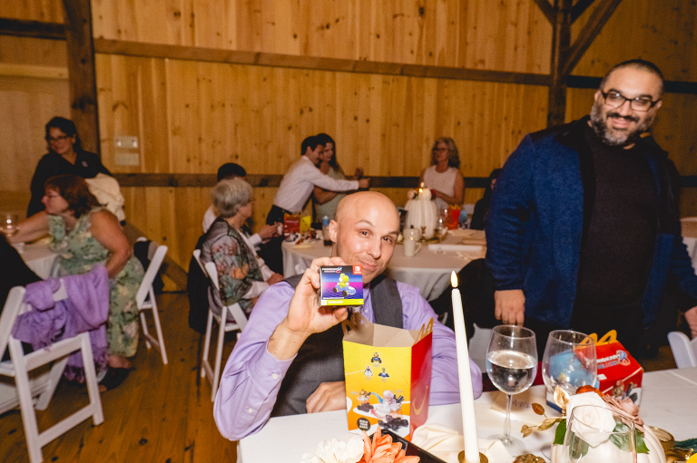 A memorable moment of the night was when RJ the DJ made an announcement that he was going to play a song and it was our mission to take a photo of the bride and groom with every table group before the song ended. What ensued was a fun dash around the reception hall to each table so that everyone got a picture with the newlyweds. I highly recommend this fun table shot alternative to anyone getting married. It was fast, but we did it.
