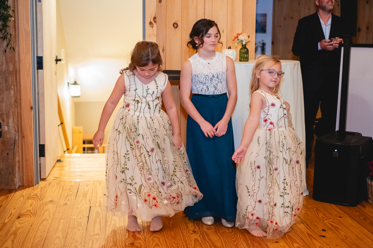 Flower girls: Isabelle )Matron of honor’s daughter), Autumn (groom’s niece), and Amelia (Groom’s niece)