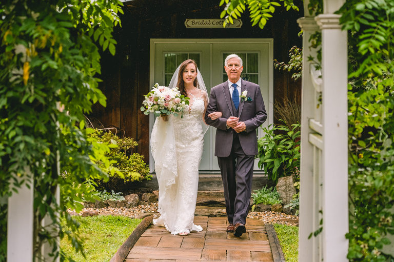Before the ceremony it started to rain even though there was no rain in the forecast, but just as the ceremony was about to begin the rain stopped falling. I had a wedding last year where the same thing happened and I always take it as a blessing and a good sign for a happy marriage. Just as the guests were to take their seats and the carriage pulled up to the bridal suite the clouds parted. The clouds departed at the perfect moment, like it was scripted for a romantic movie.