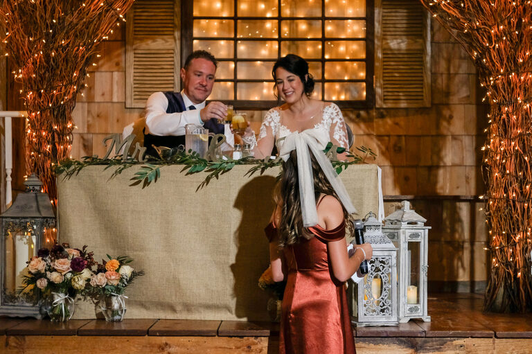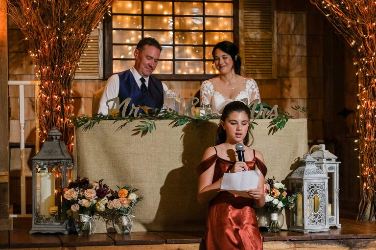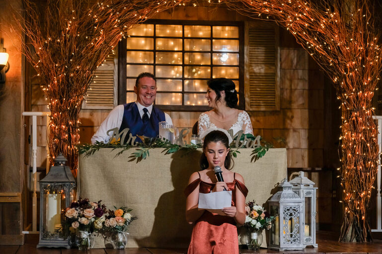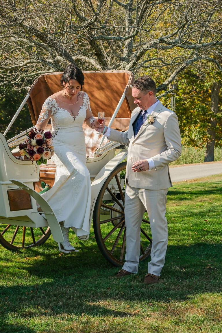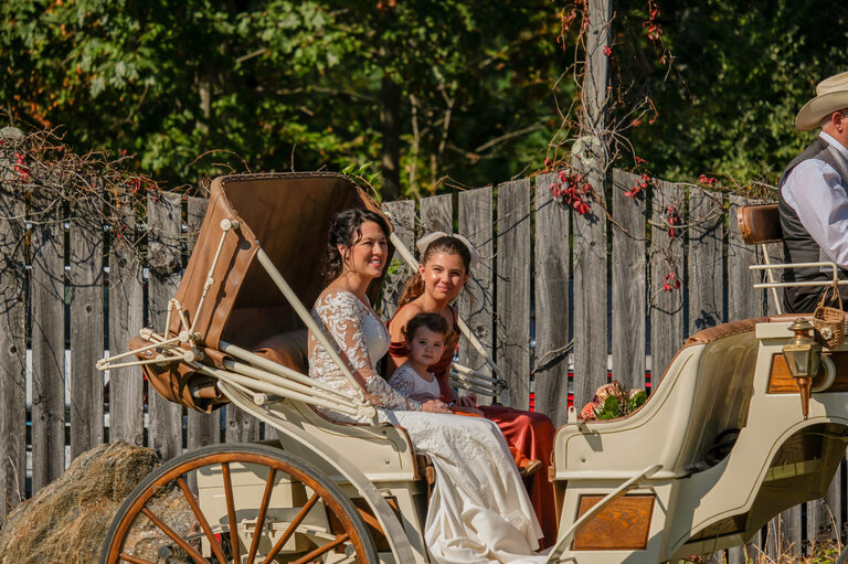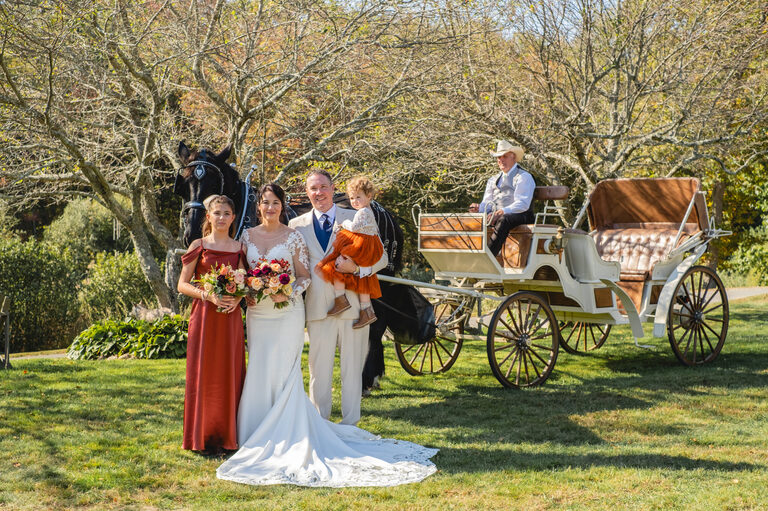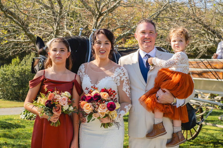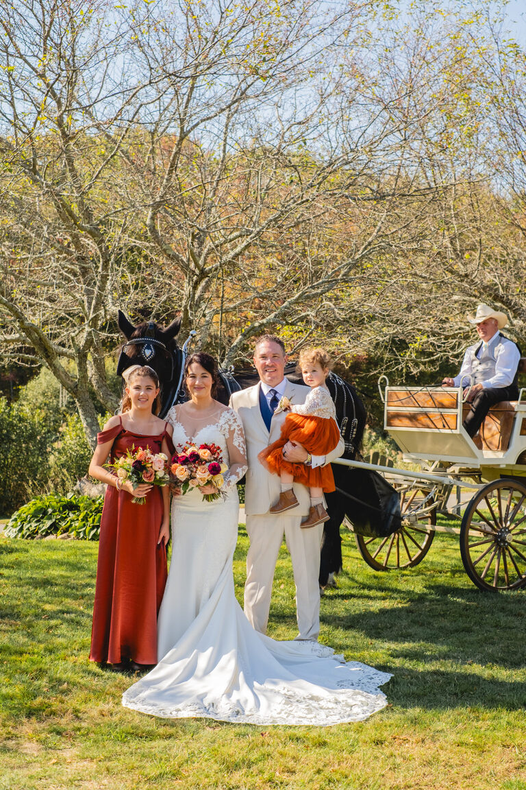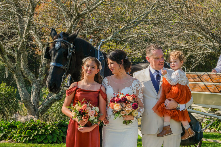 Amelia was an adorable flower girl and Penelope stood by her mom’s side during the ceremony. During the reception, guests enjoyed carriage rides, hors d’oeuvres, a bar with custom beverages and conversations on the large wrap around porch. Children played on the lawn and Penelope gave a heartwarming and funny speech in honor of her mom and new step-dad.