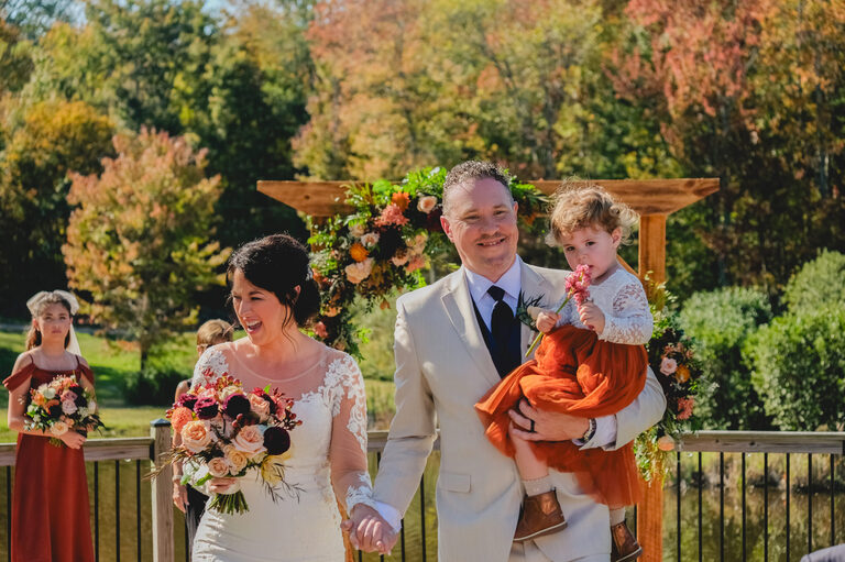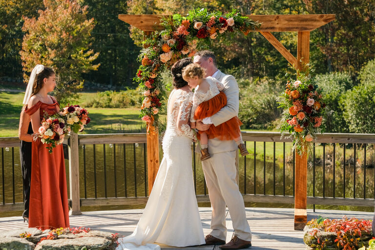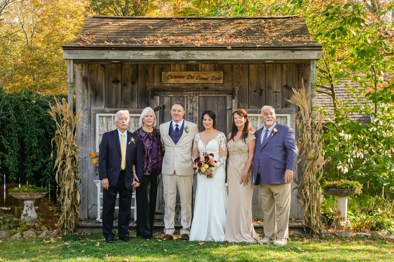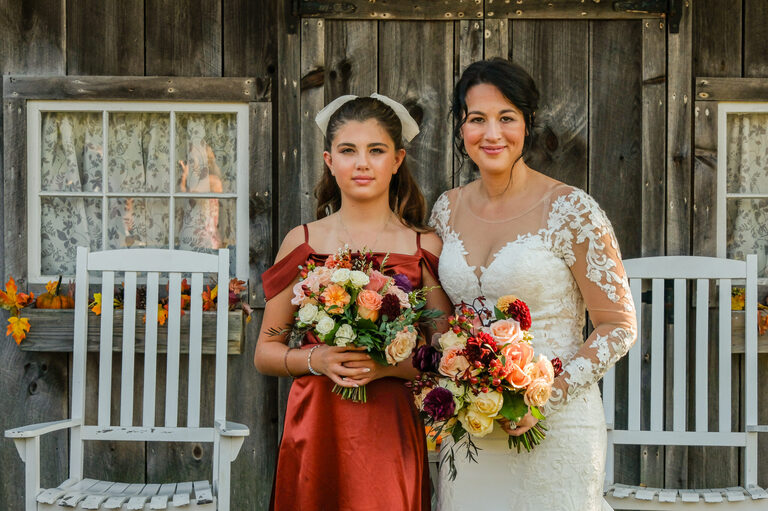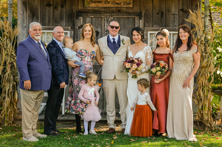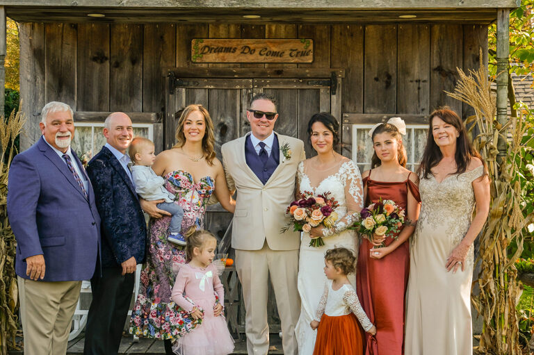 Nicole and Sean were married on October 5th at a beautiful rustic barn wedding at Wood Acres Farm in Terryville, Connecticut. The day of was beautiful and warm for an Autumnal wedding and the leaves were just beginning to pop with color. I first met Nicole and Shawn at the very end of the summer for their engagement session, which included their two year old daughter, Amelia and Nicole’s oldest daughter, twelve year old Penelope.