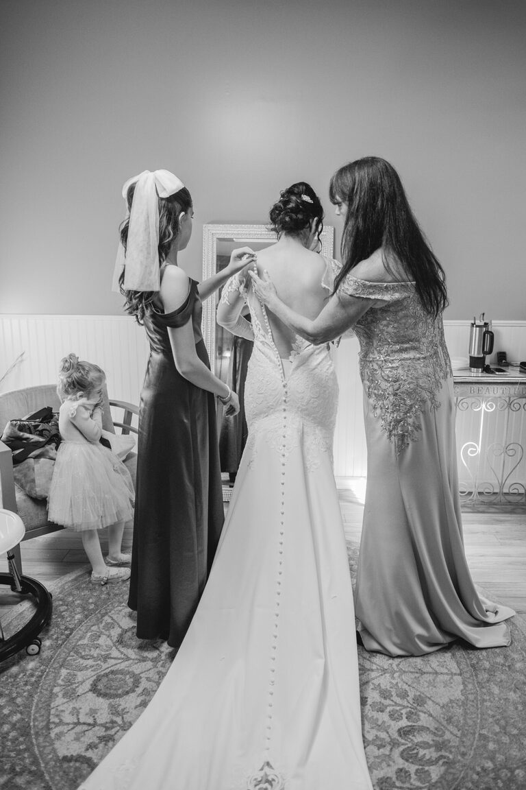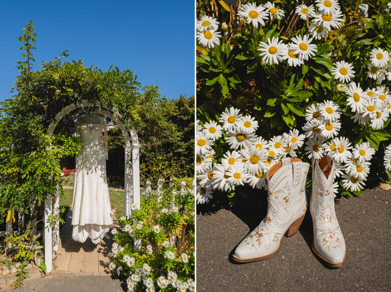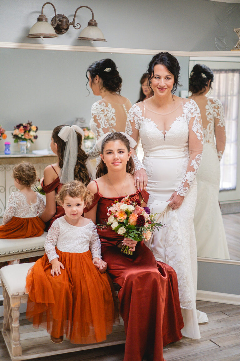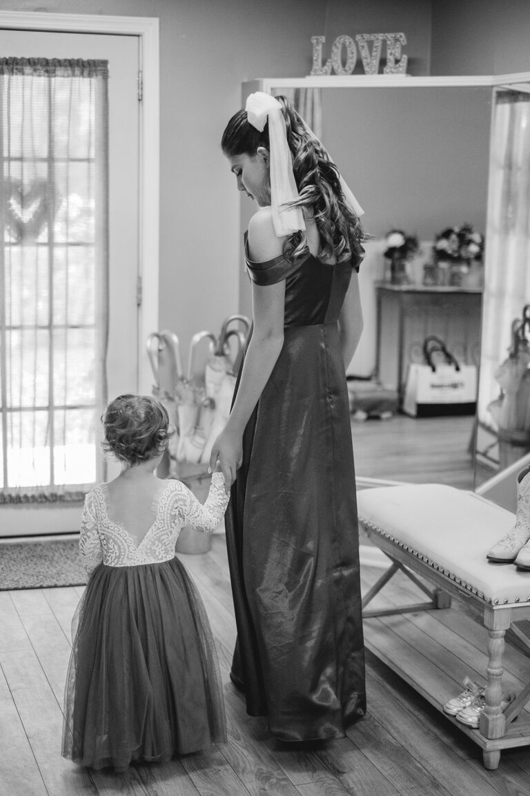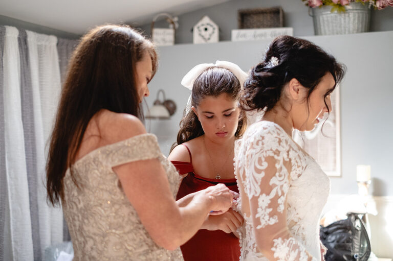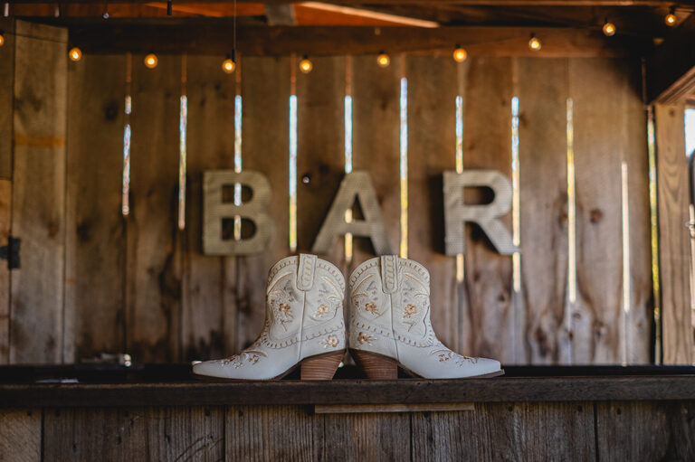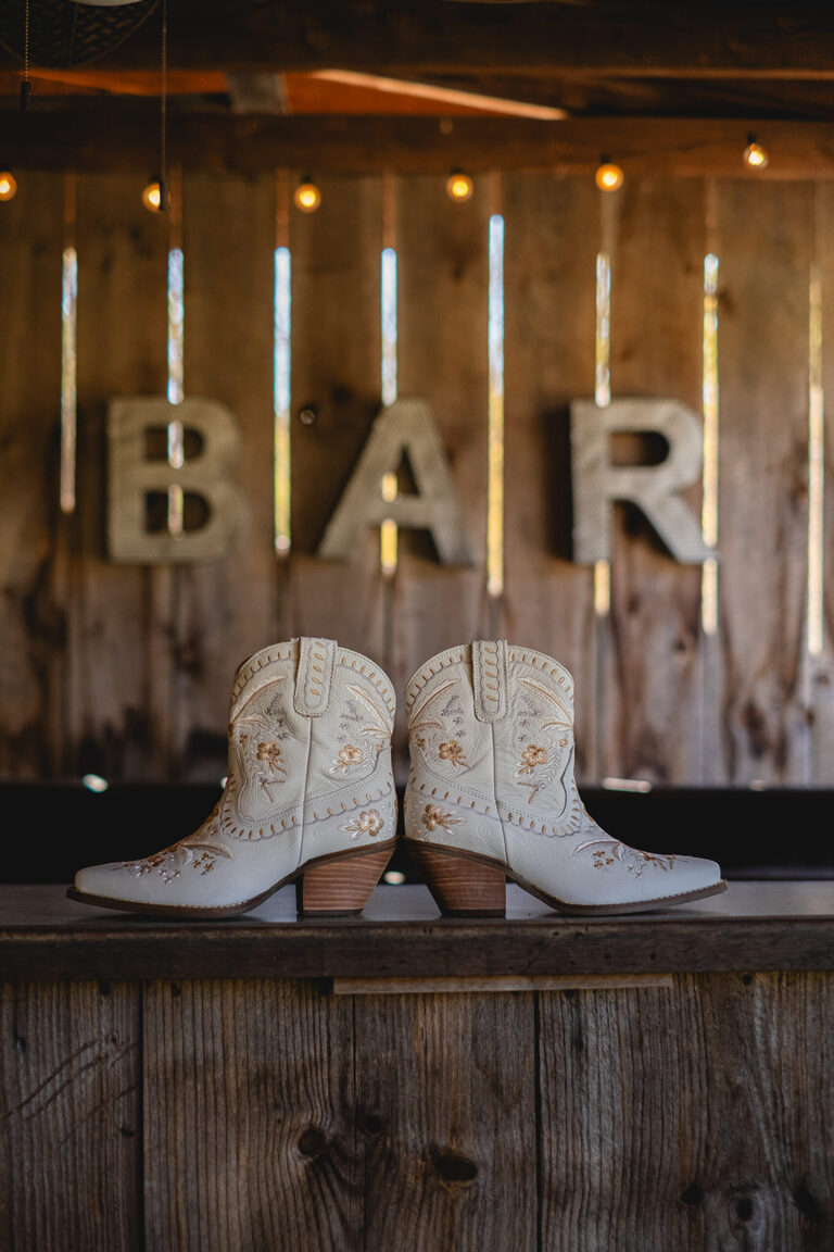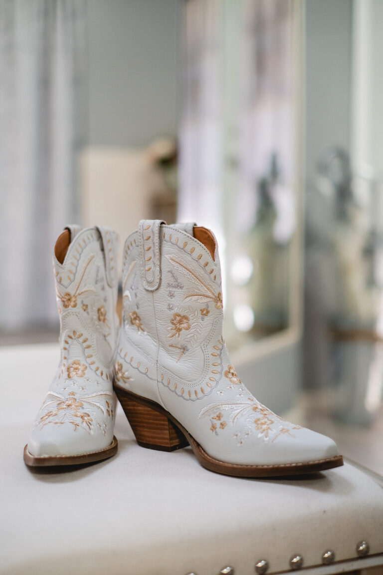 Getting ready with Nicole was an elegant and simple morning, where Nicole did her own hair style for her wedding! Nicole also did her daughter Penelope’s hair for the occasion and Nicole and her two daughters all wore the sweetest cowgirl boots with their dresses. Nicole and her girl’s arrived to the ceremony behind the barn by a horse drawn carriage.