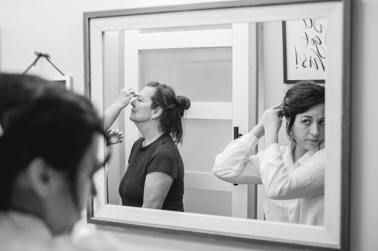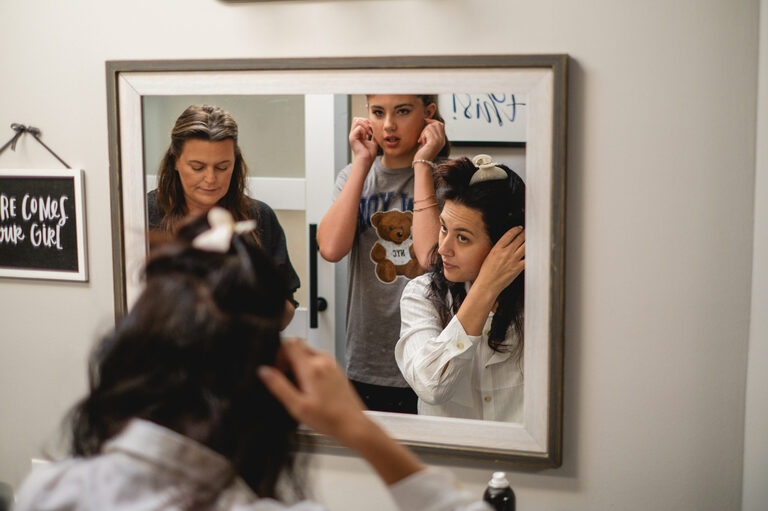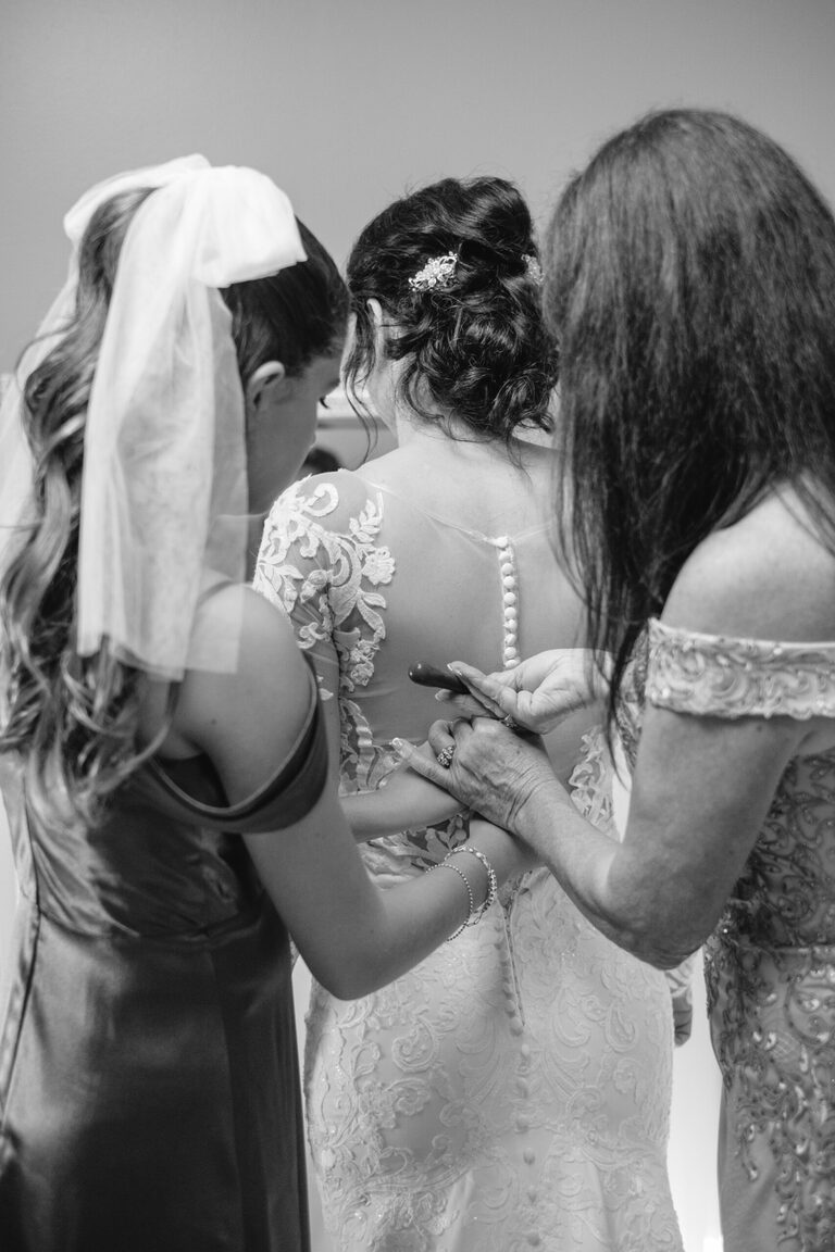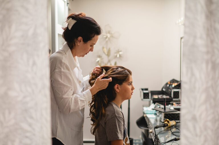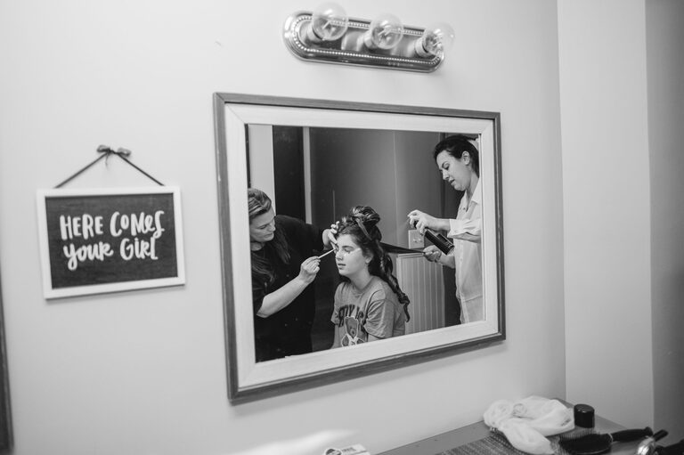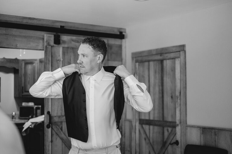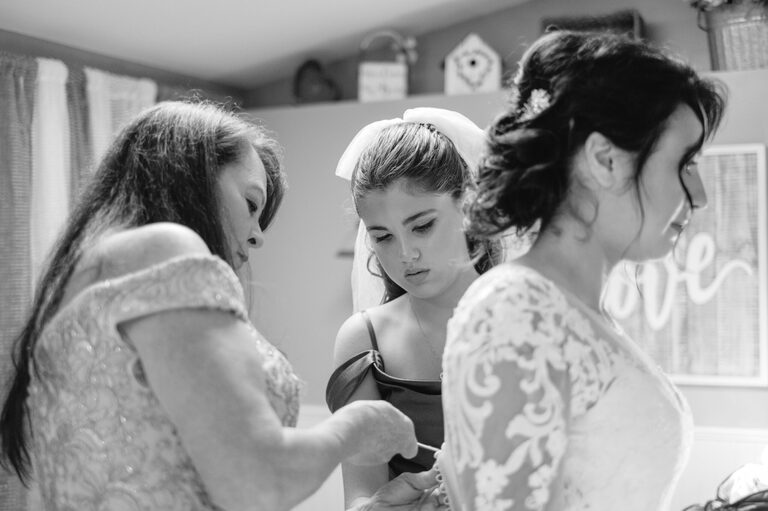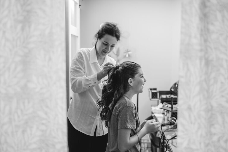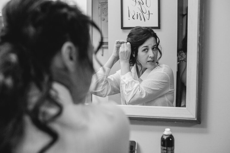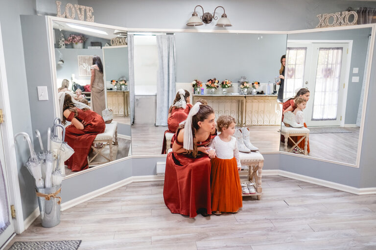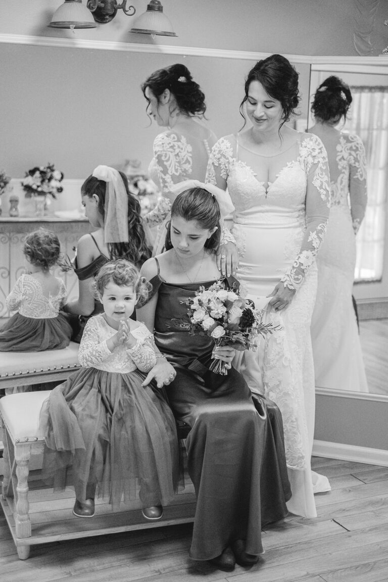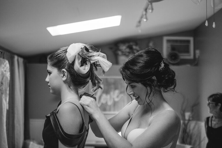 Getting ready with Nicole was an elegant and simple morning, where Nicole did her own hair style for her wedding! Nicole also did her daughter Penelope’s hair for the occasion and Nicole and her two daughters all wore the sweetest cowgirl boots with their dresses. Nicole and her girl’s arrived to the ceremony behind the barn by a horse drawn carriage.