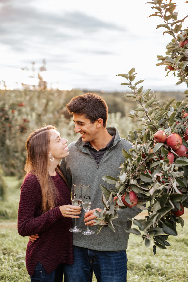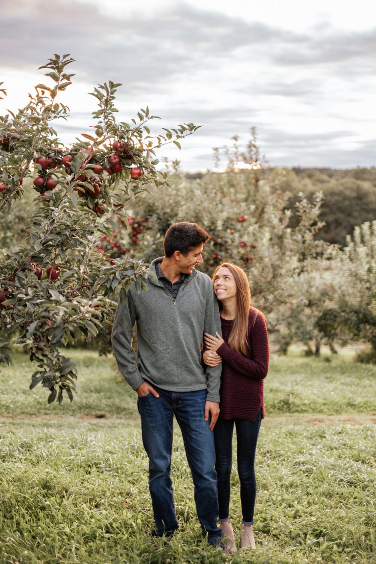 Rachel and Eric are getting married this coming weekend! The other week we got together for a pre-wedding engagement session. With the pandemic putting a damper on a lot of engagement and wedding plans, I am so thankful for every opportunity to photograph and get to know my couples before the big day. We decided to wait until early autumn for all the cozy fall vibes and I believe we found them at the lovely March Farm Orchard in Bethlehem, Connecticut. A very special thank you to March Farm for allowing us into your orchard after hours to capture this beautiful engagement session.
