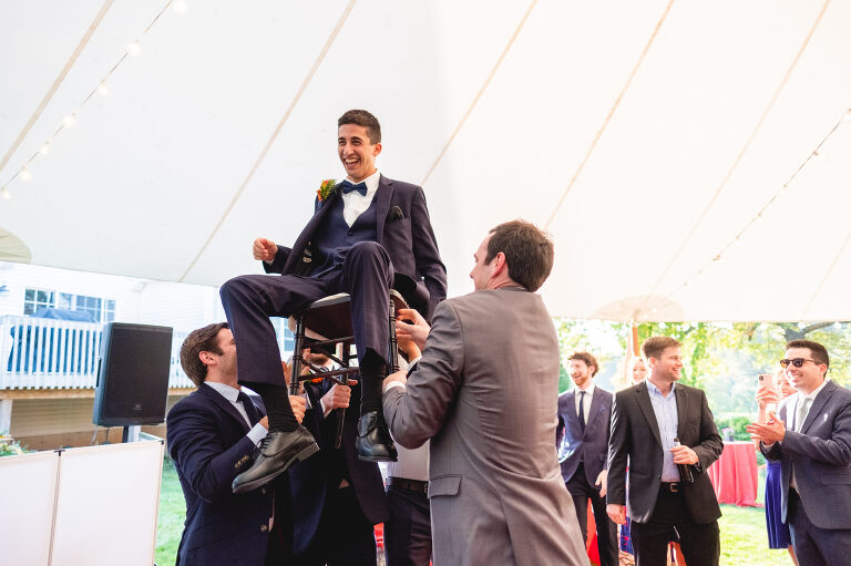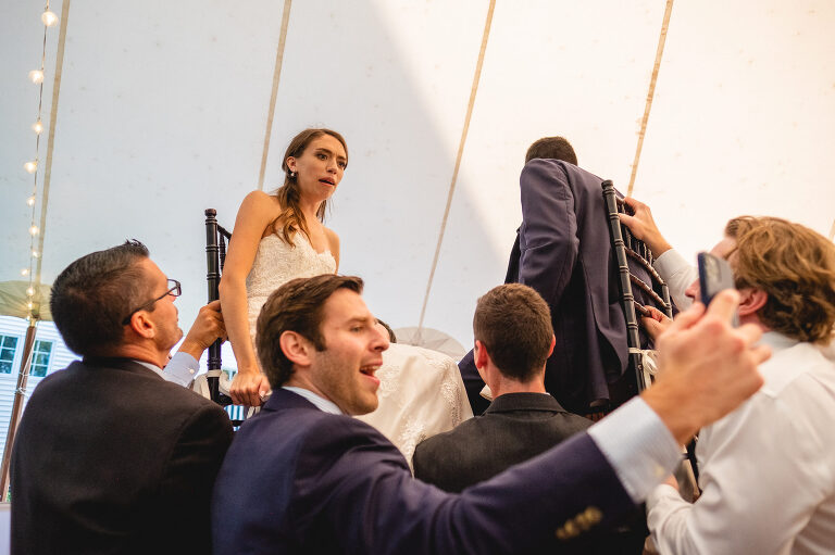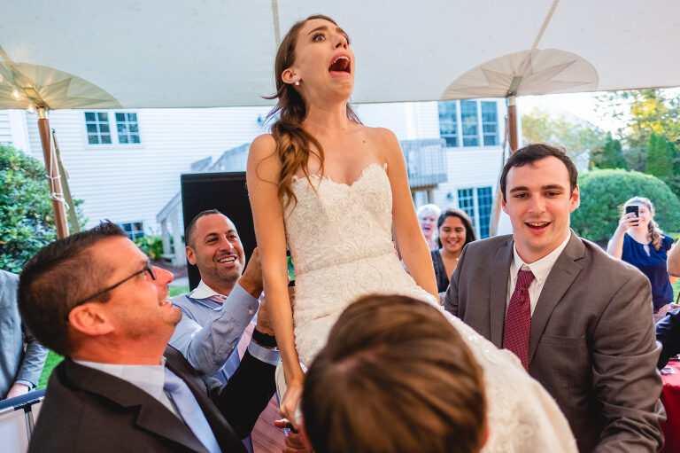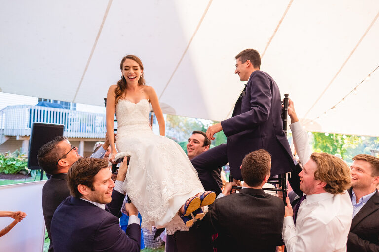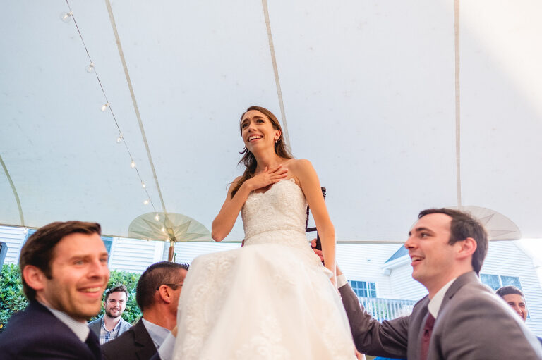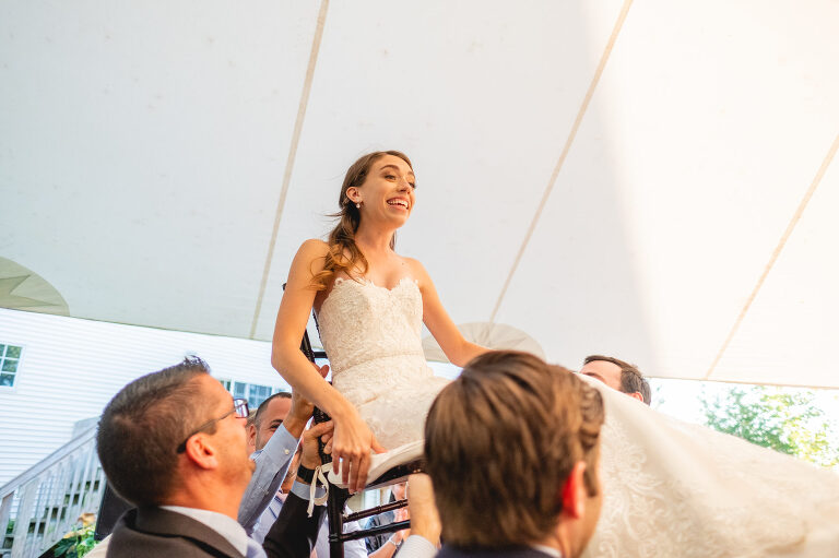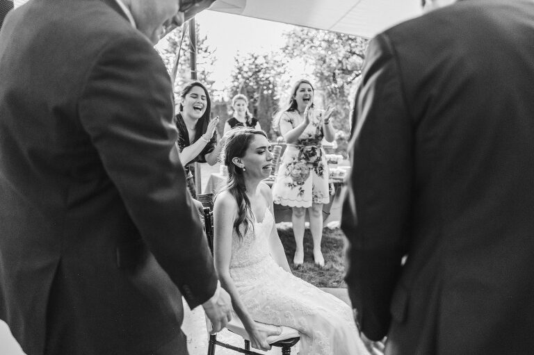 Being lifted in a chair was not Rachel’s idea of a good time, but she was a great sport.