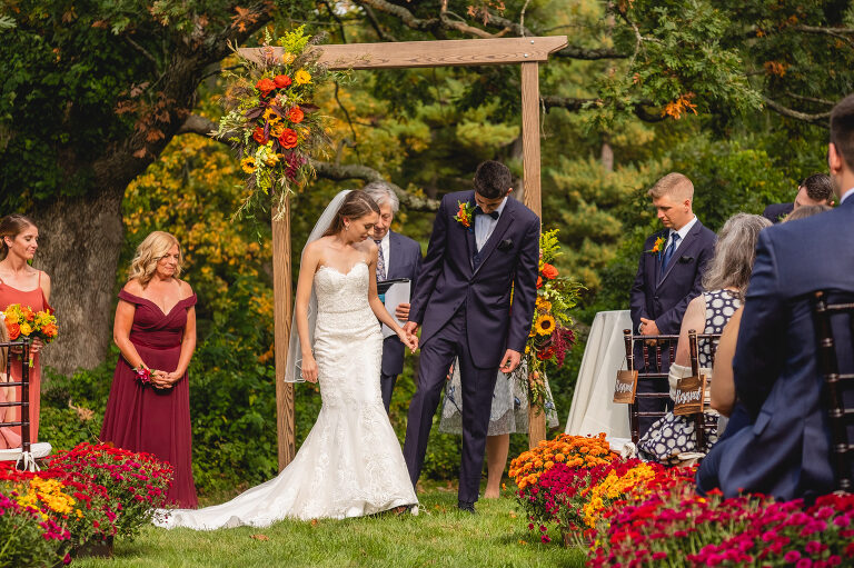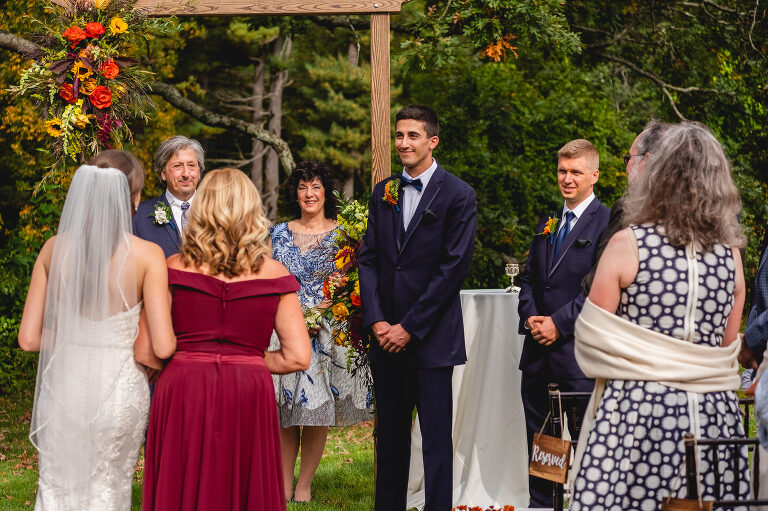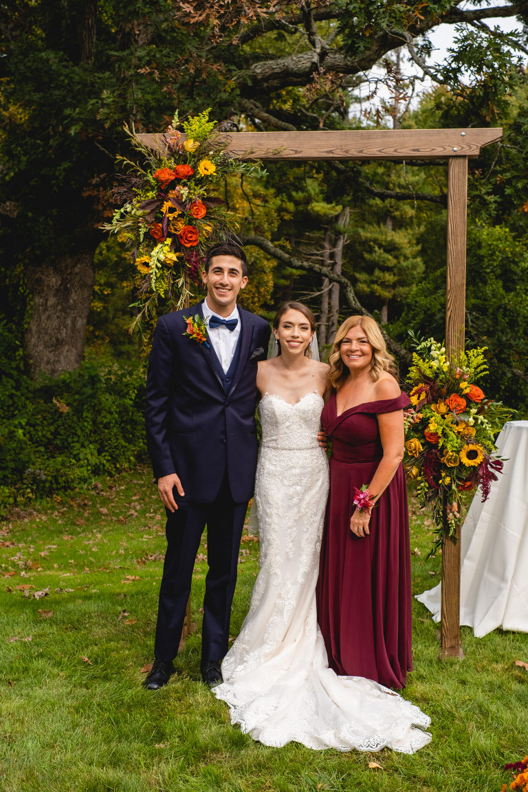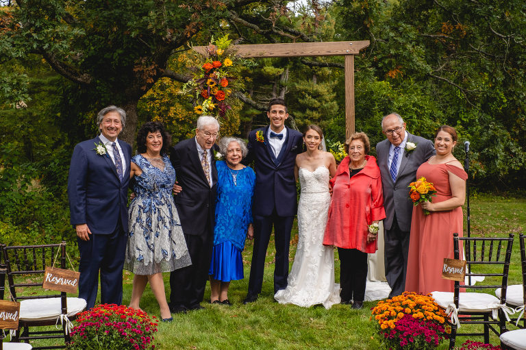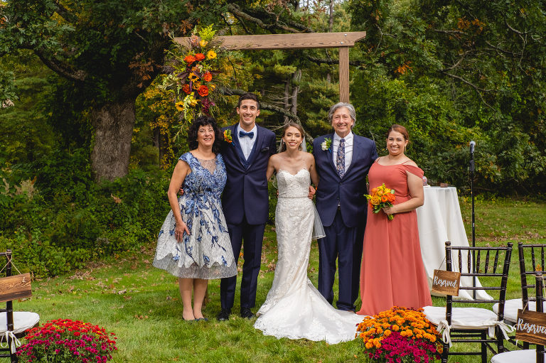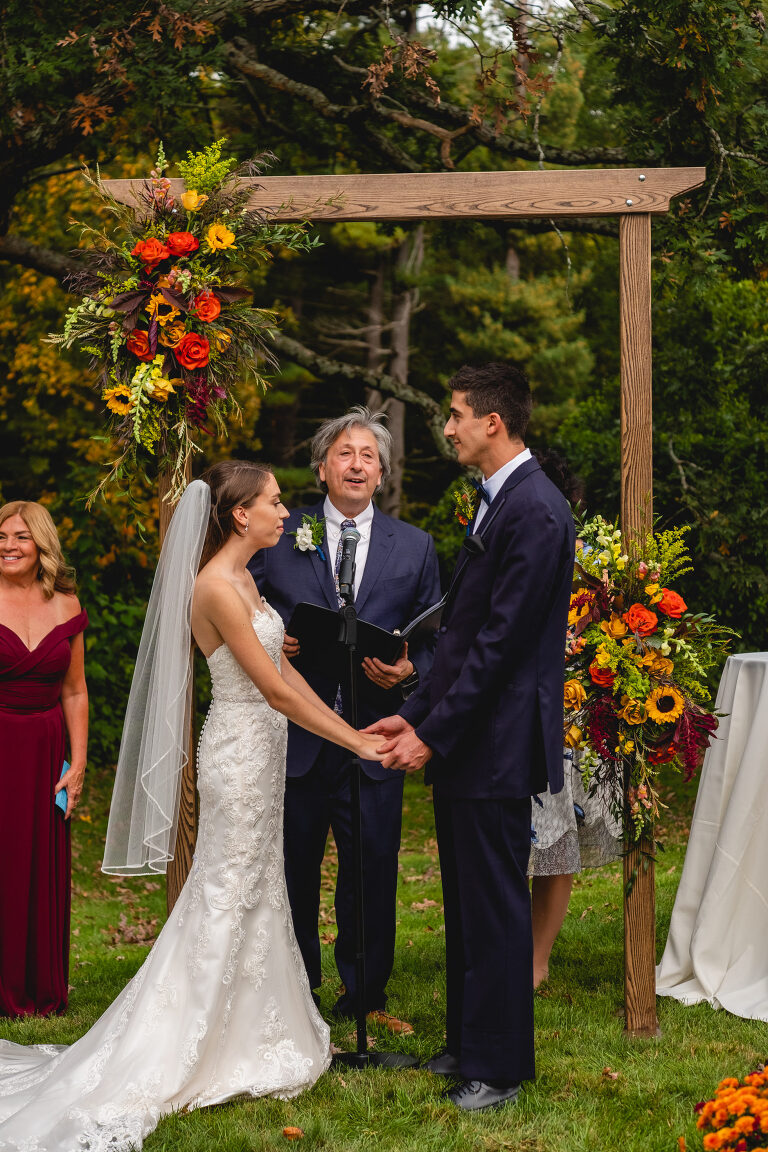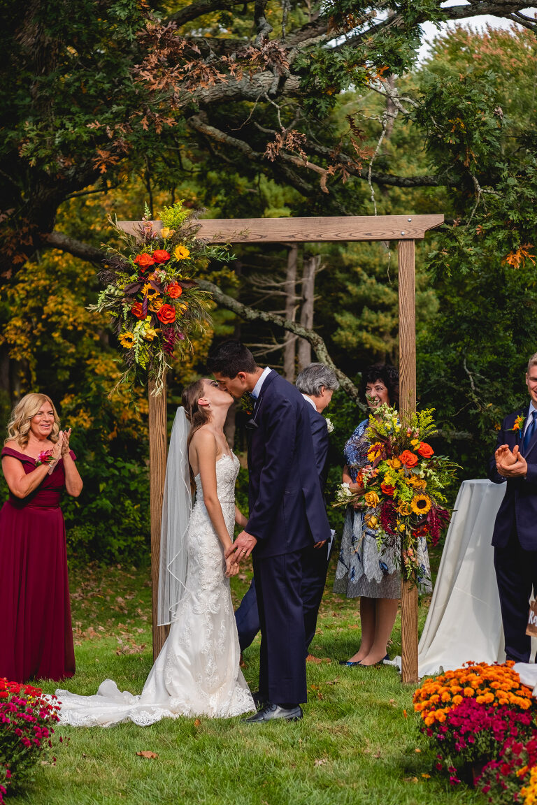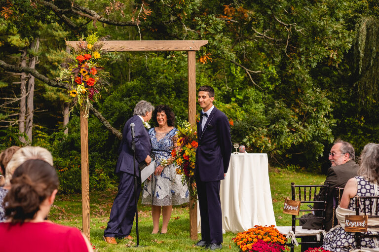 Rachel and Eric were married at a beautiful outdoor ceremony at Eric’s family home in Glastonbury on October 16, 2021. The forecast predicted rain, but instead the rain held off until late in the evening just as we were finishing their reception photos at the Gastropark in West Hartford. It turned out to be the most beautiful warm October day as the leaves were just beginning to change into golden hues. The entire wedding day was an intimate and welcoming family occasion from start to finish. Backyard weddings are a blessing.