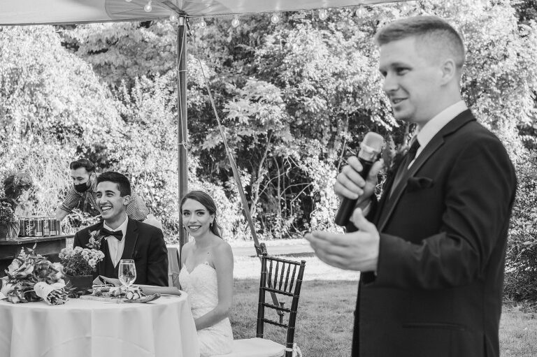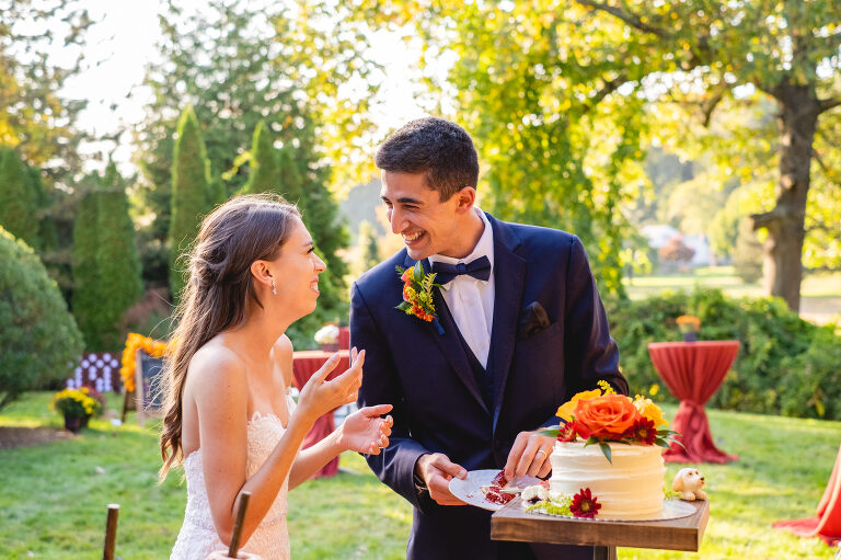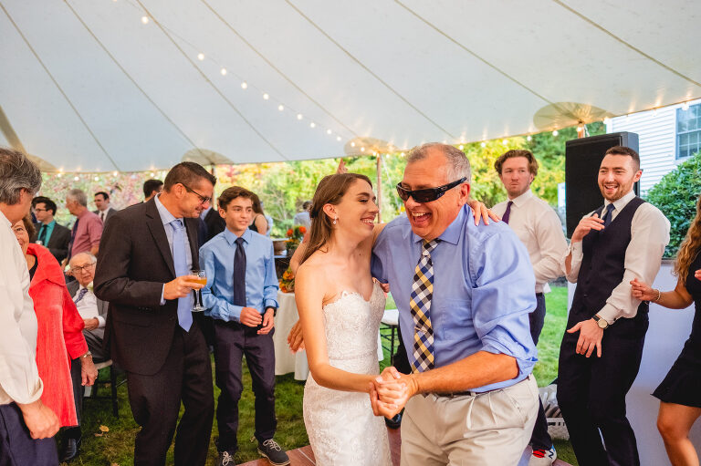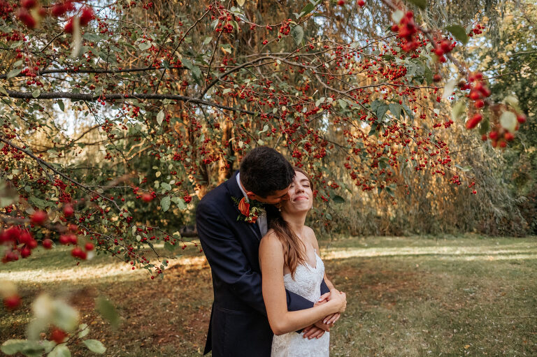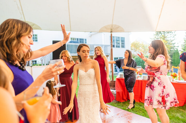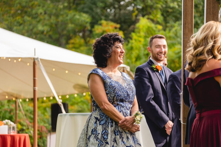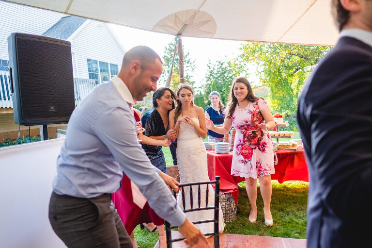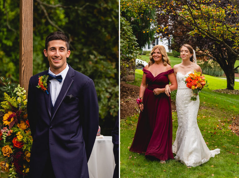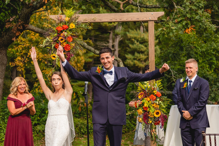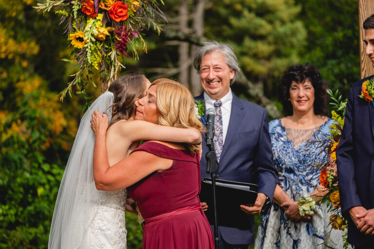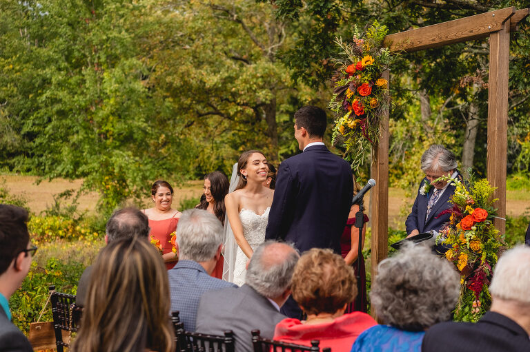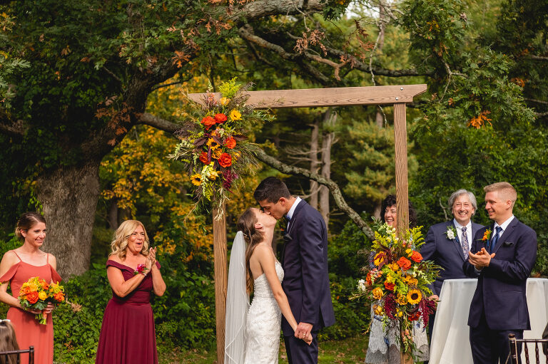Rachel and Eric were married at a beautiful outdoor ceremony at Eric’s family home in Glastonbury on October 16, 2021. The forecast predicted rain, but instead the rain held off until late in the evening just as we were finishing their reception photos at the Gastropark in West Hartford. It turned out to be the most beautiful warm October day as the leaves were just beginning to change into golden hues. The entire wedding day was an intimate and welcoming family occasion from start to finish. Backyard weddings are a blessing.