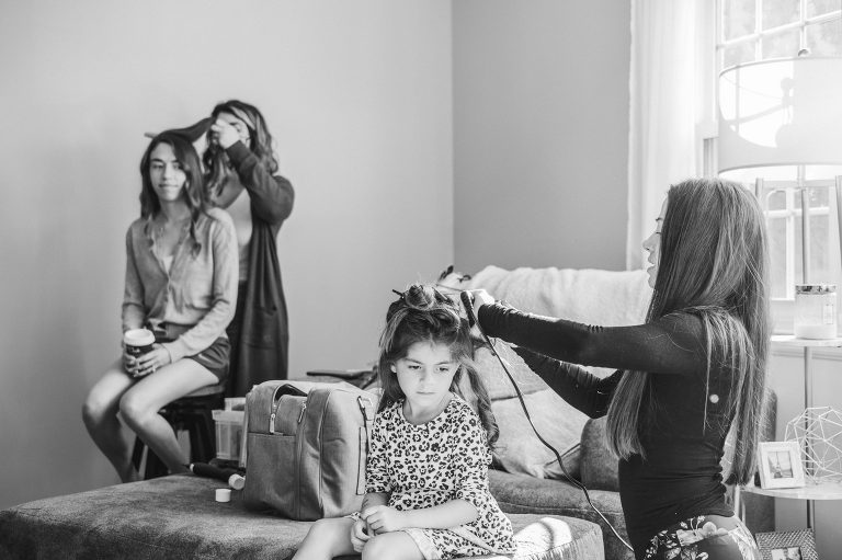 A makeup stand and impromptu hair salon were set up right in the living room by the very talented Sophia and Sara of Kiss and Makeup.