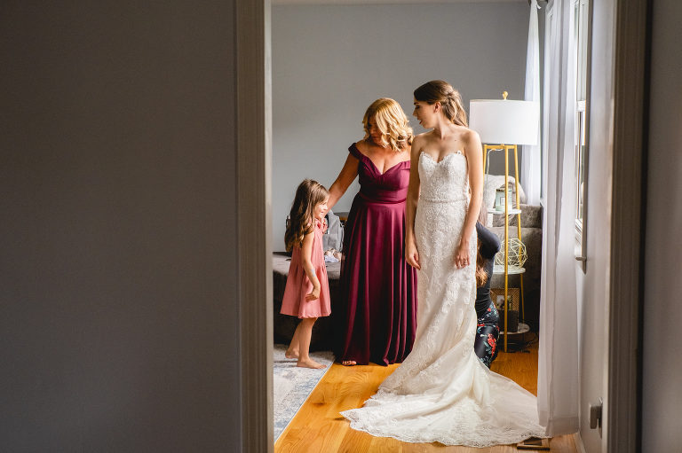Rachel’s mother, Patty, had the honor of buttoning Rachel’s gown. As a wedding photographer, one of my favorite moments at the weddings I attend is when the gown is fastened.It signals a big change in the energy of the day and creates an anticipation for the ceremony to come.