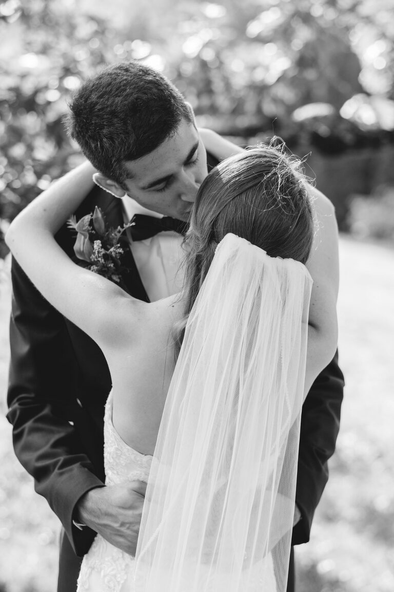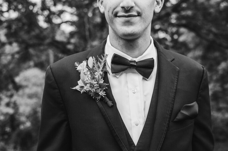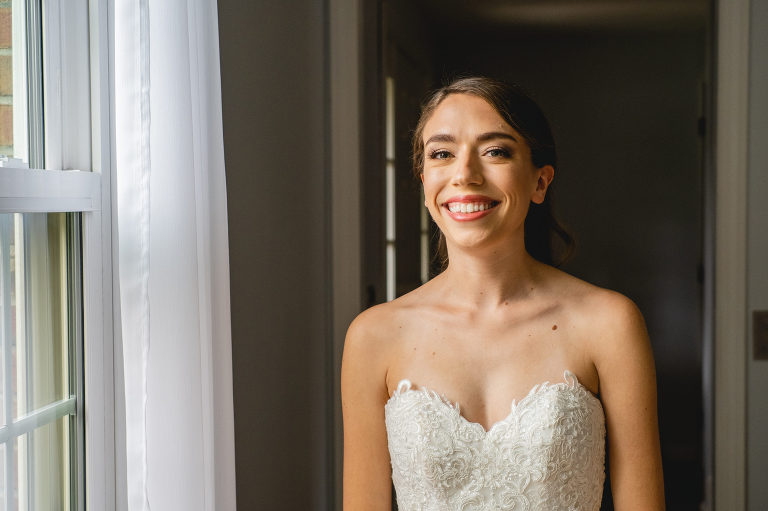 Both Rachel and Eric started the day together at their home with a cozy family breakfast before getting ready for the big day. Eric was dressed upstairs in their bedroom as Rachel’s hair and makeup was done down downstairs in the living room. When Eric was dressed and ready to go, he snuck outside so that Rachel wouldn’t see him in his suit and drove to his family home where the ceremony was being set up in the backyard. It is so beautiful to think that they will always have these cherished memories right in their own home. Many wedding days begin in a hotel due to the distance between home and the venue, but it is extra special to have these unforgettable moments take place in your own home.